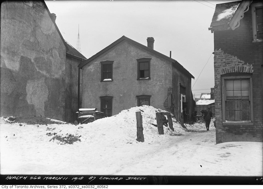 87 Edward Street, a condemned house not far from 54 Edward (Photo credit: City of Toronto Archives, Fonds 200, Item 562).